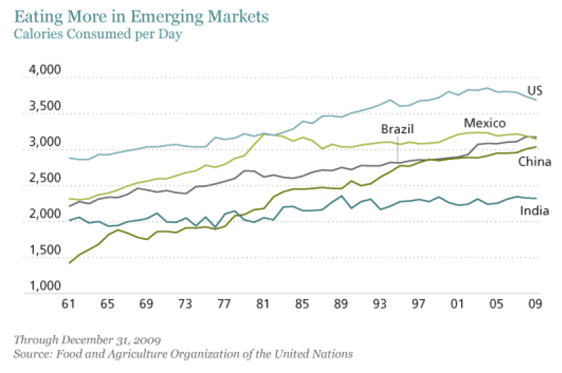 With Economic growth comes a rise in sedentary lifestyle, eating more, more eating out, eating more meat, eating higher calorie junk food, and lower physical exercise.