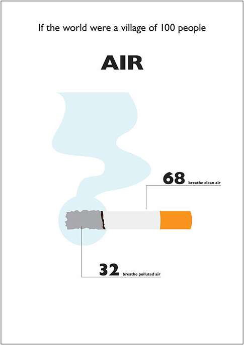 68 people would breath clean air. 32 people would breathe polluted air.